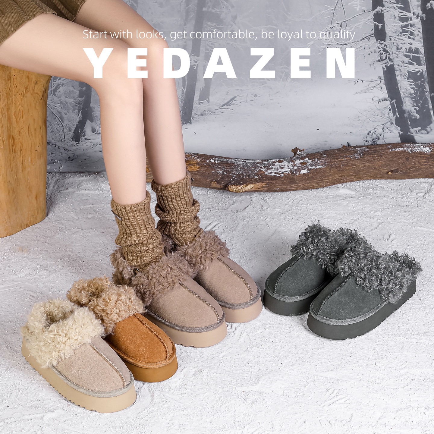2025超火低帮雪地靴女外穿冬季保暖加绒巨好看半拖羊羔毛毛鞋厚底