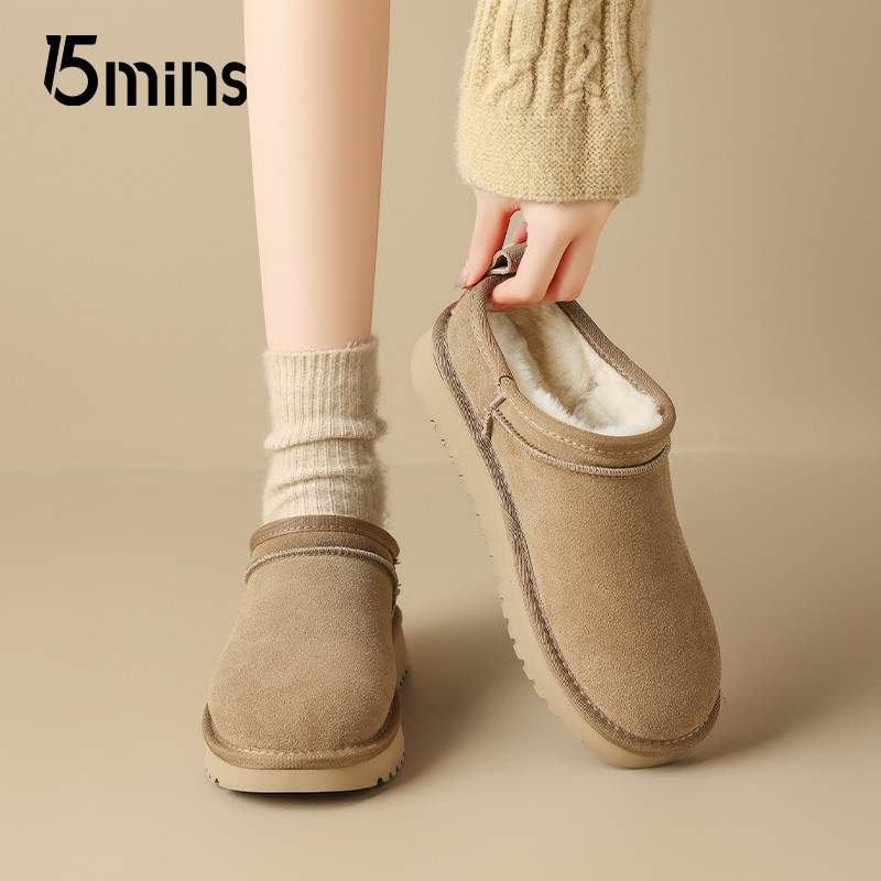 15mins低帮雪地靴女2025新款冬季时尚百搭面包鞋防寒加绒保暖棉鞋
