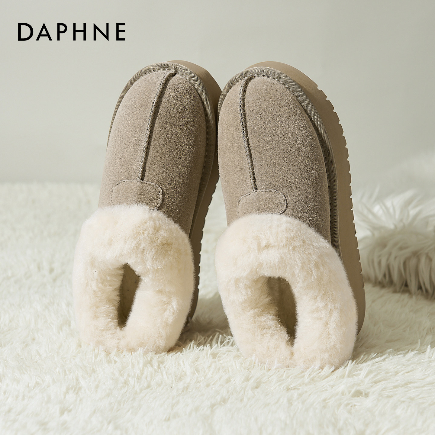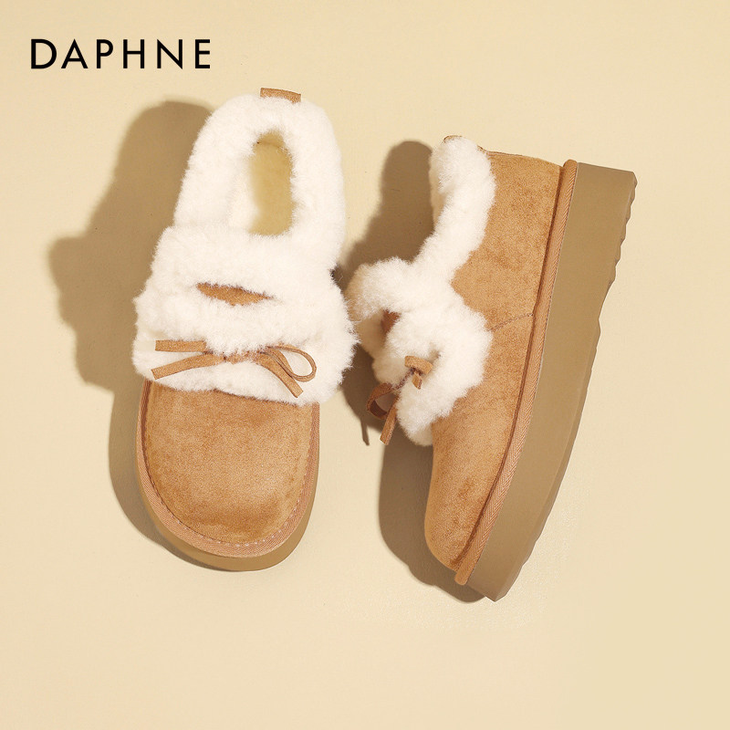 达芙妮低帮雪地靴女2025新款冬季加绒加厚保暖棉鞋厚底面包毛毛鞋