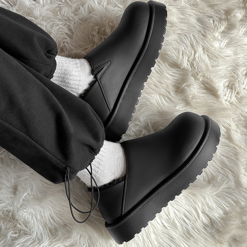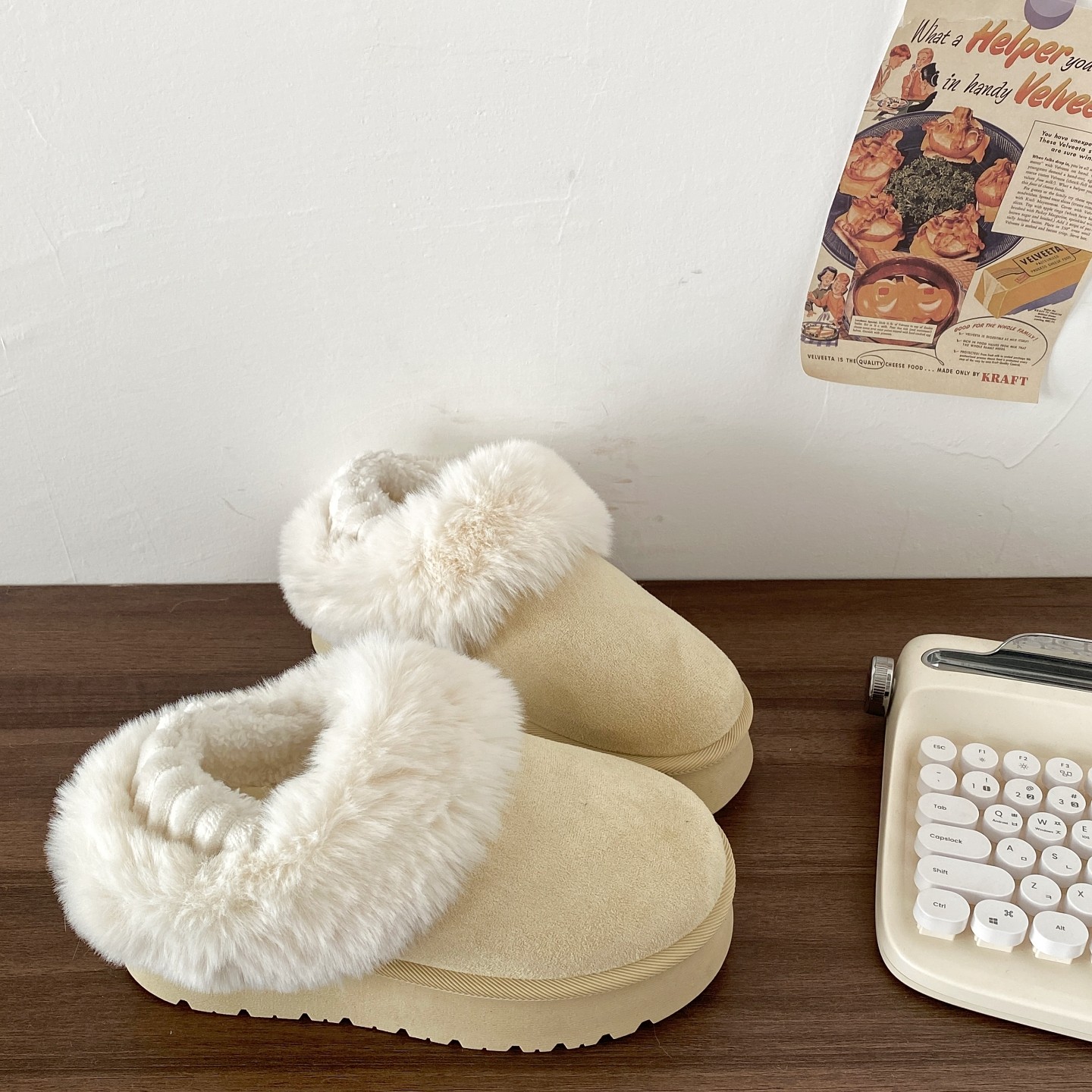 一脚蹬厚底低帮雪地靴保暖毛毛鞋增高女2025冬季新款羊毛加绒棉鞋