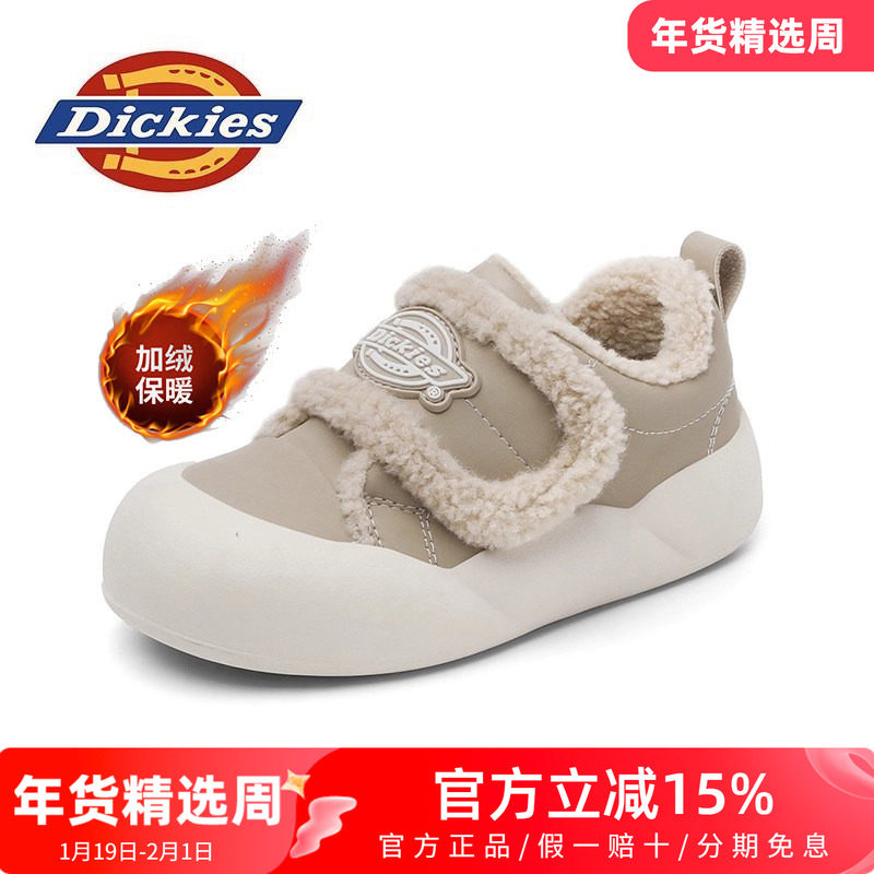 Dickies儿童棉鞋2025冬季新款时尚女童毛毛鞋仿羊羔毛低帮雪地靴