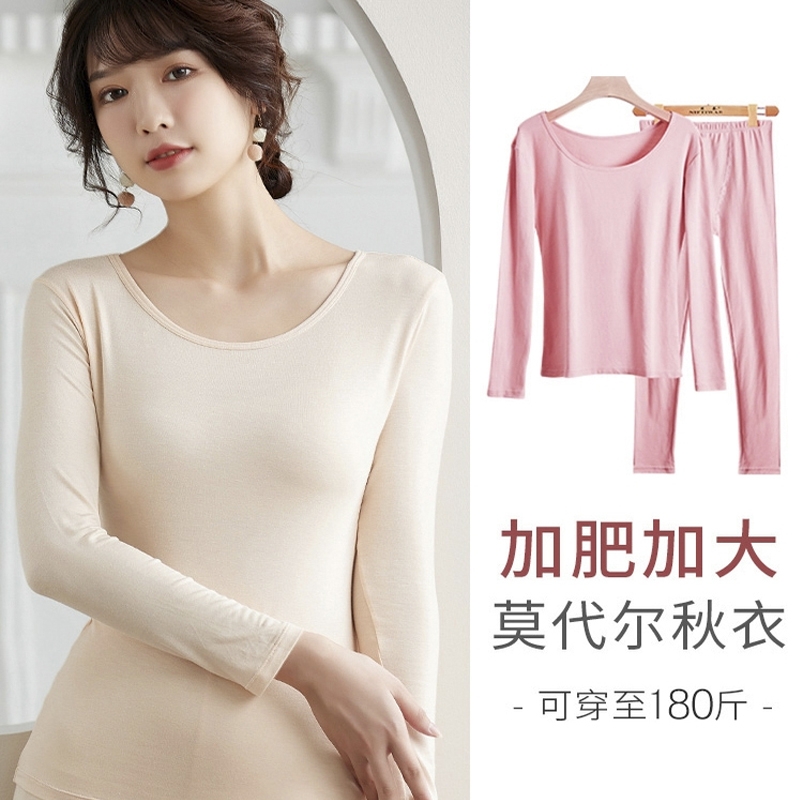 莫代尔秋衣秋裤女套装薄款圆领美体衣大码女士纯棉棉毛衫保暖内衣
