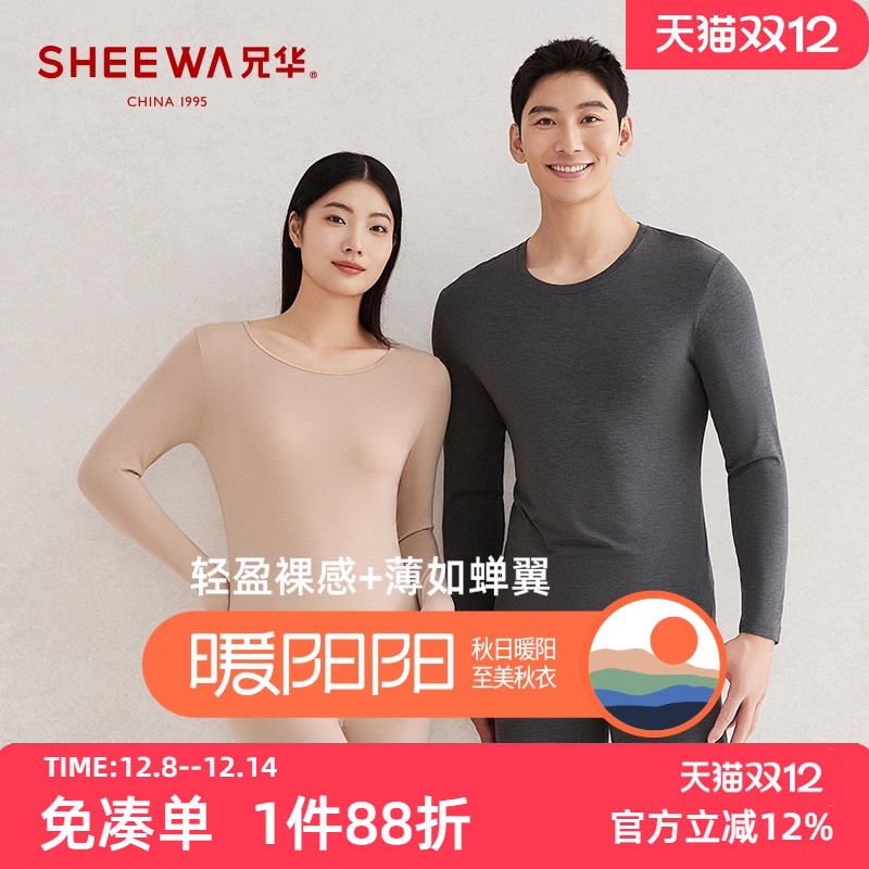三枪保暖内衣男抗菌防螨莫代尔秋衣秋裤女圆领隐形无痕轻薄肌底衣