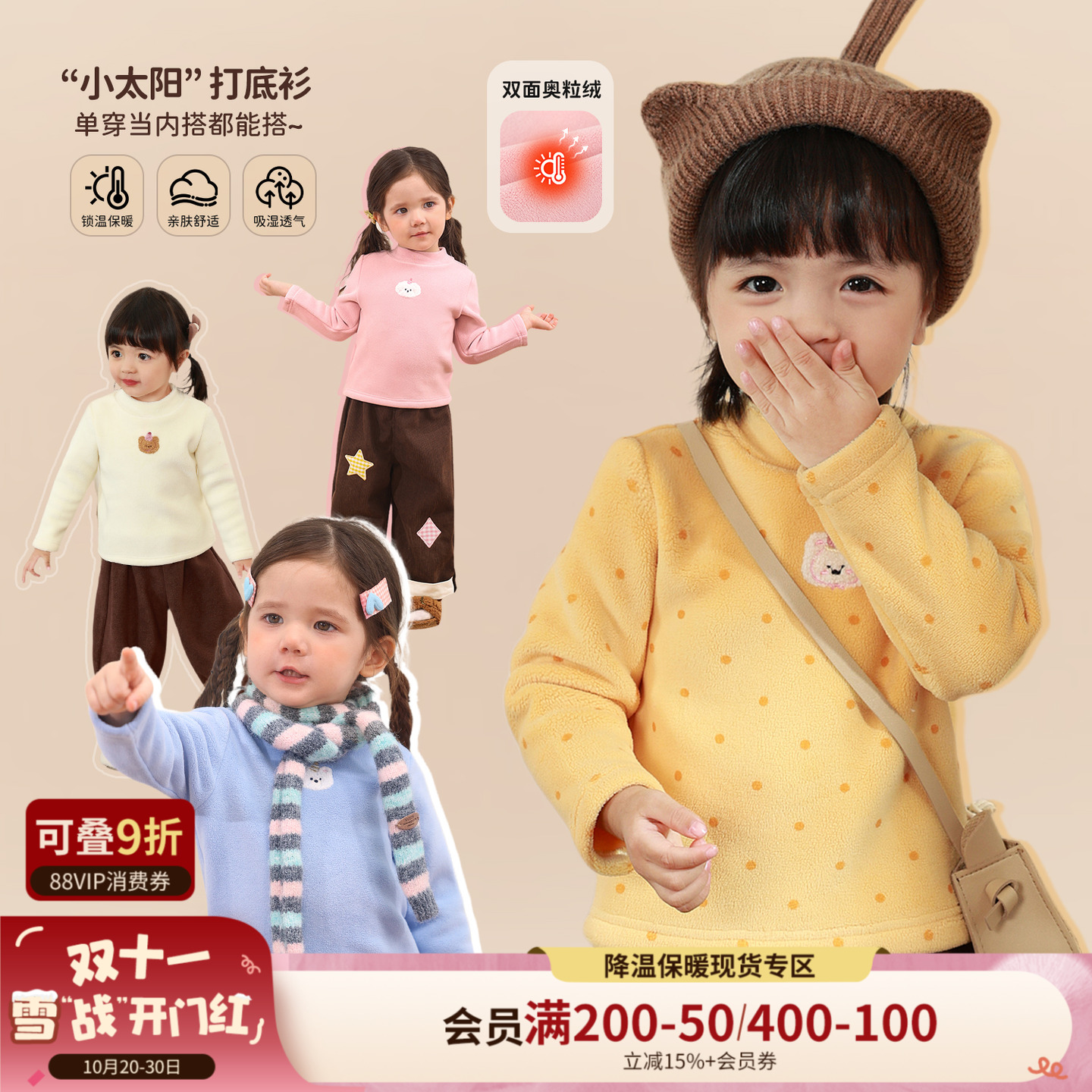 【羊绒感软】小O宝童装 宝宝加绒打底衫女柔软2025冬女童长袖t恤