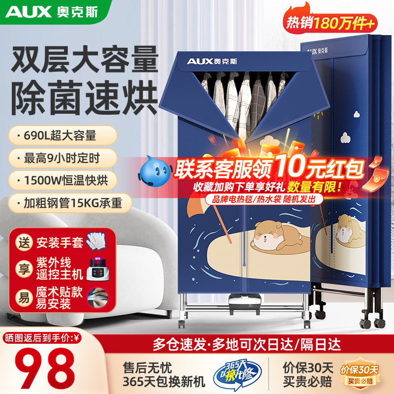 奥克斯干衣机家用烘干烘衣服小型宿舍家庭风干衣物哄烤器折叠衣柜