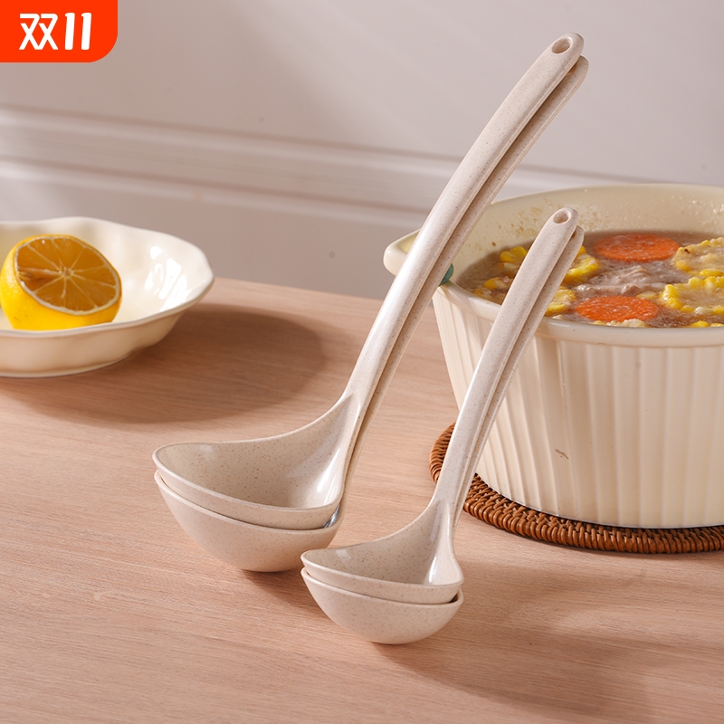 小麦秸秆长柄汤勺家用食品级耐高温长把喝汤匙粥勺大号耐摔舀汤勺