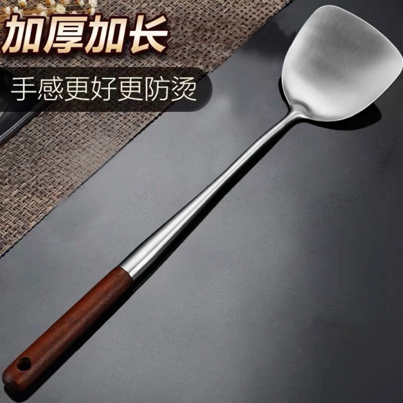 304不锈钢炒勺锅铲家用炒铲长柄汤勺分菜勺厨师专用炒菜勺子铲子