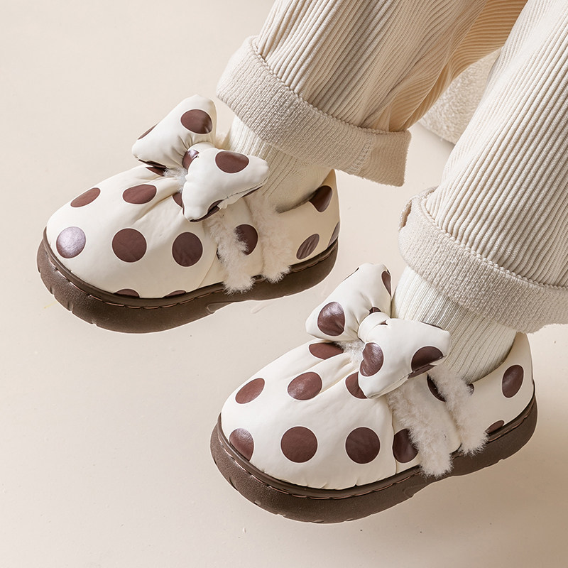 可爱蝴蝶结女士棉拖鞋新款冬季家居室内保暖防滑家用情侣地板拖鞋