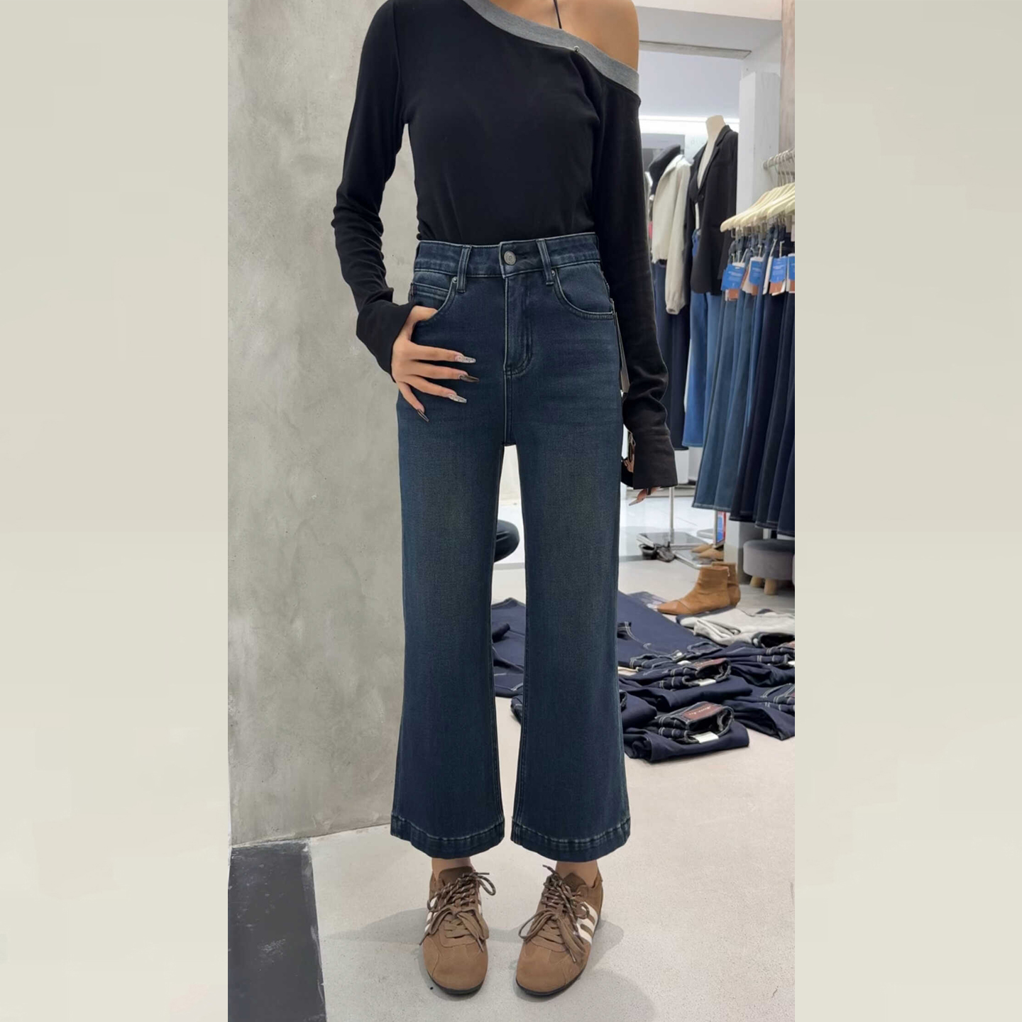 - 高腰长牛仔裤
