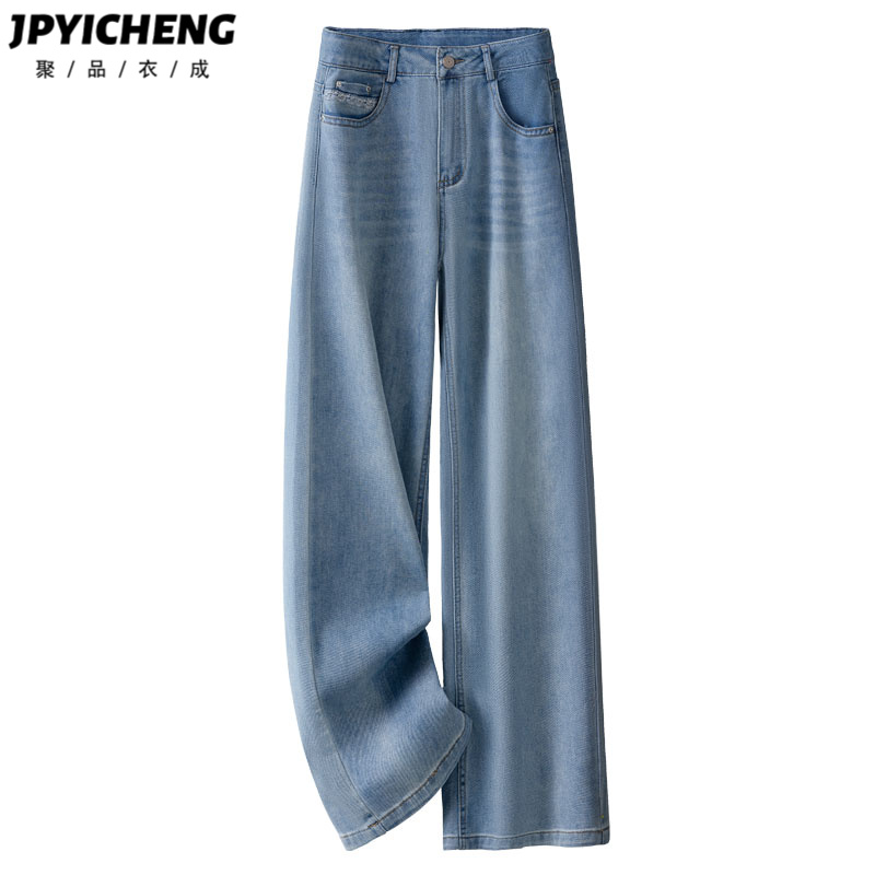 蓝色阔腿牛仔裤女款2025新款秋季爆款百搭高腰九分垂坠感直筒裤子