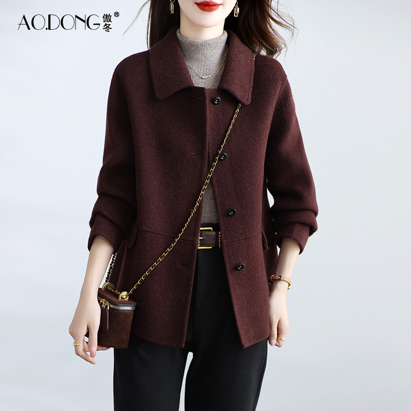 新款高端双面绒大衣女短款羊毛呢小个子百搭显瘦妈妈简约外套秋冬