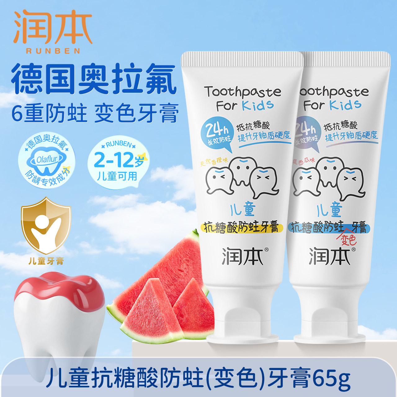 润本儿童牙膏3到6到12岁含氟换牙期抗糖防蛀奥拉氟宝宝婴儿牙膏