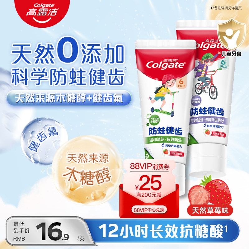 【秒杀】高露洁儿童牙膏含氟防蛀牙刷牙膏0~6~12岁宝宝牙膏分龄