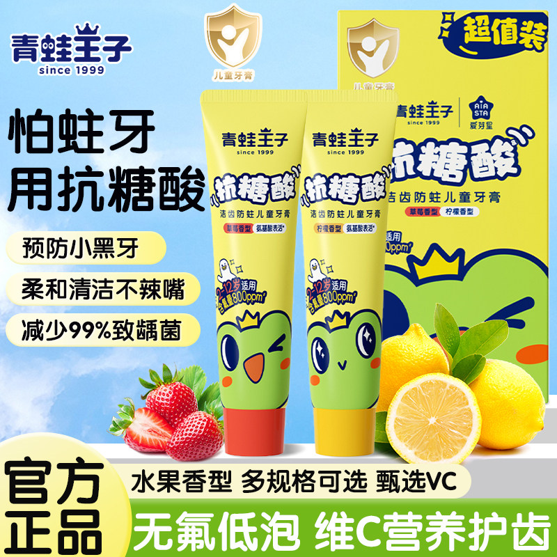 青蛙王子儿童牙膏3到6到12岁水果味抗糖酸防蛀防龋宝宝牙膏正品