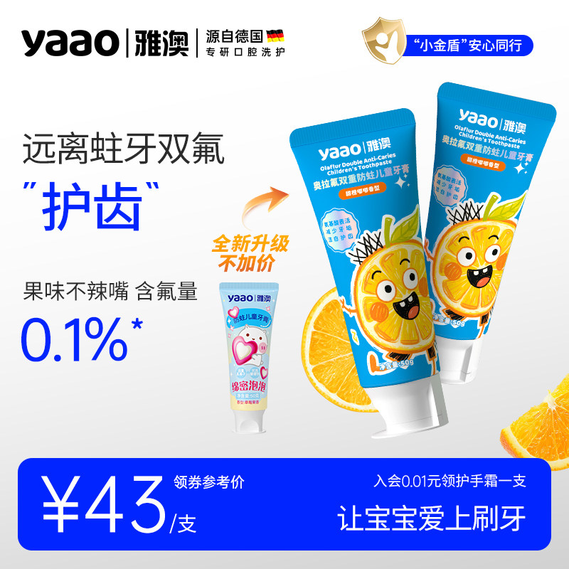 雅澳儿童牙膏含氟洁齿宝宝牙膏6个月到3岁到12岁换牙期果味牙膏