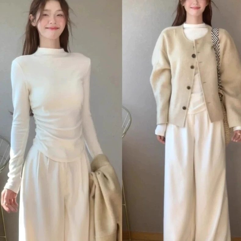 龙妹家白色半高领打底衫女内搭2025新款秋冬韩系穿搭毛衣针织上衣