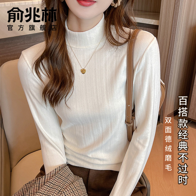 龙妹家白色半高领打底衫女装内搭2025年秋冬新款爆款磨毛加绒上衣