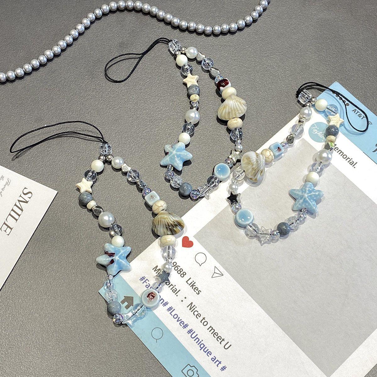 蓝色星星大海传说手机链条小清新ccd挂绳贝壳diy串珠相机挂饰防