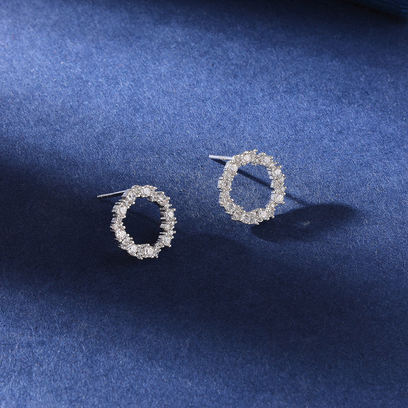 韩剧蓝色大海的传说同款925银针耳钉耳环圆形圆圈微镶锆石耳饰女