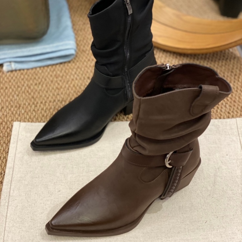 马丁靴女款2025新款韩版粗跟时尚单鞋英伦风休闲百搭显高舒适短靴