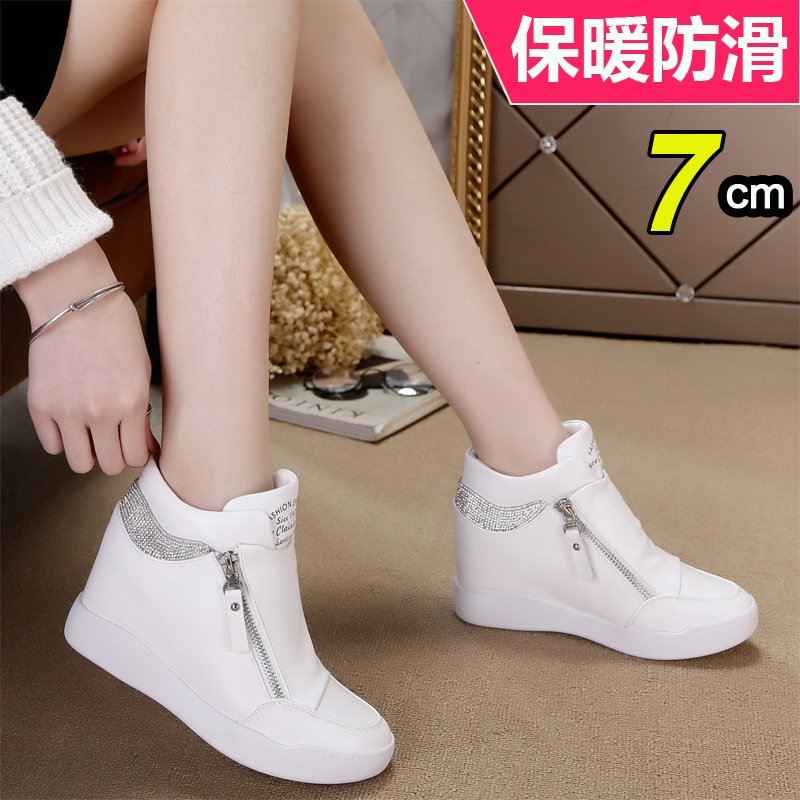 香港小白鞋女款2025新款百搭侧拉链韩版显瘦单鞋内增高女士休闲鞋