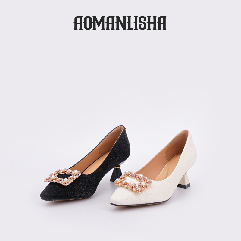 【澳蔓丽莎】尖头法式细跟水钻方扣25年春款韩版不累脚女款单鞋
