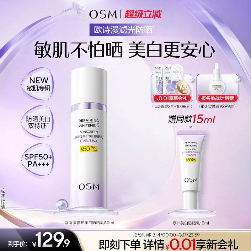 欧诗漫秋冬防晒霜官方旗舰店正品50倍防紫外线隔离遮瑕三合一osm