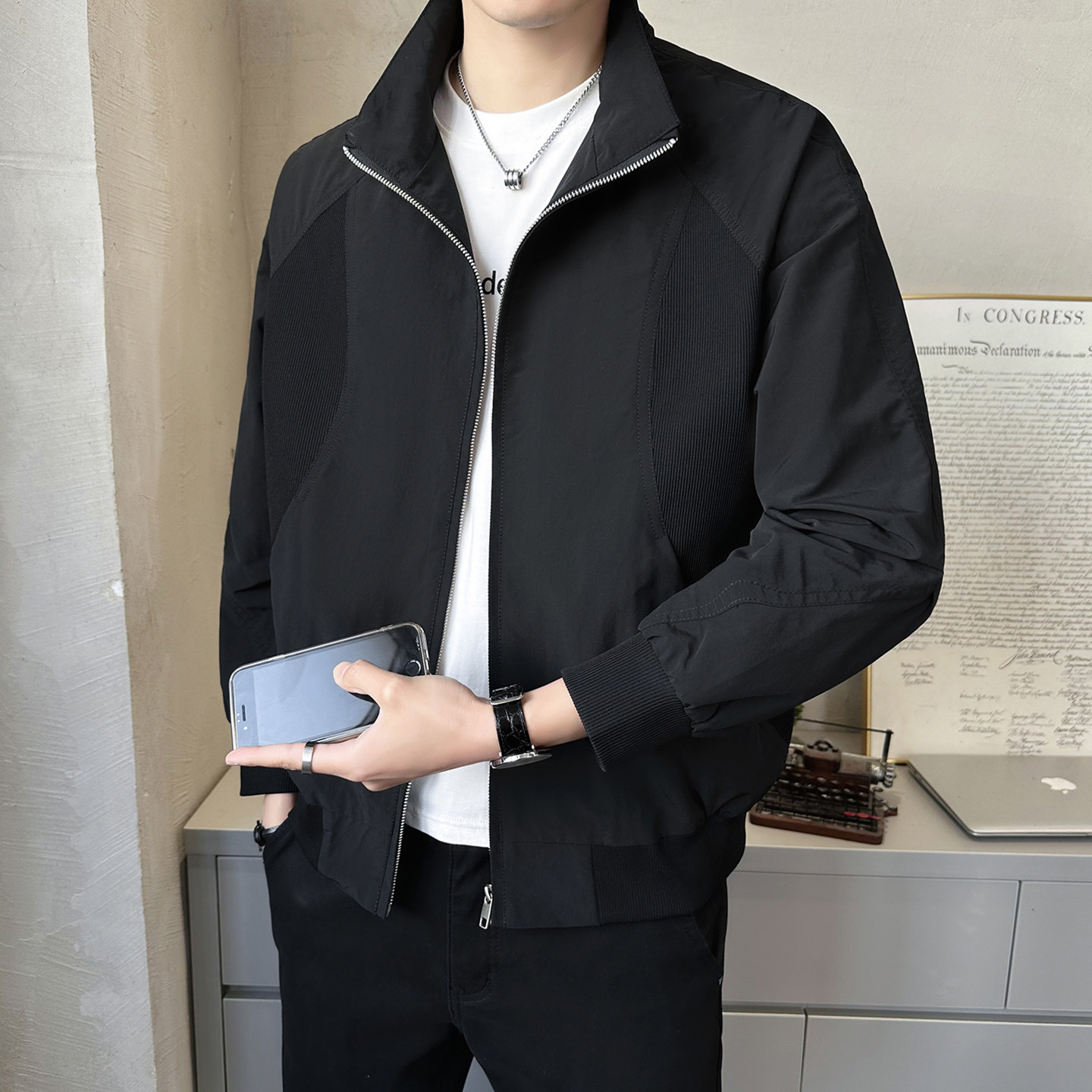 - 秋装薄款夹克男
