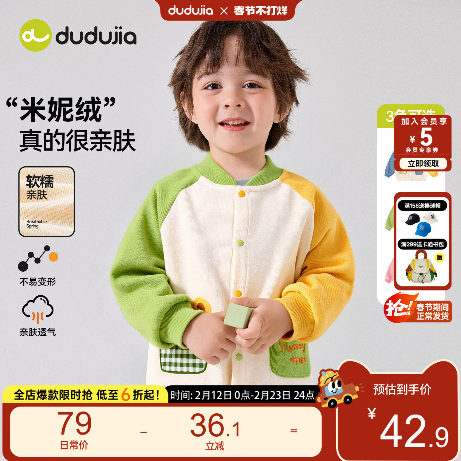 dudujia宝宝外套春装夹克男童上衣洋气软壳服儿童开衫女童棒球服a