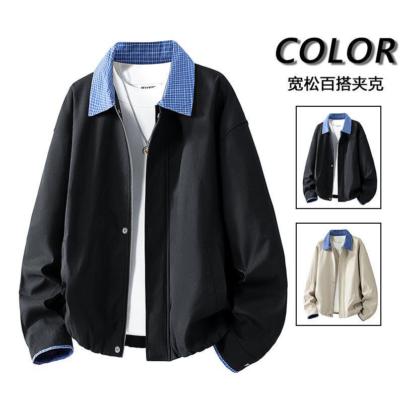 2026年春季新款夹克男 爆款假两件衬衫领春装夹克外套 翻领工