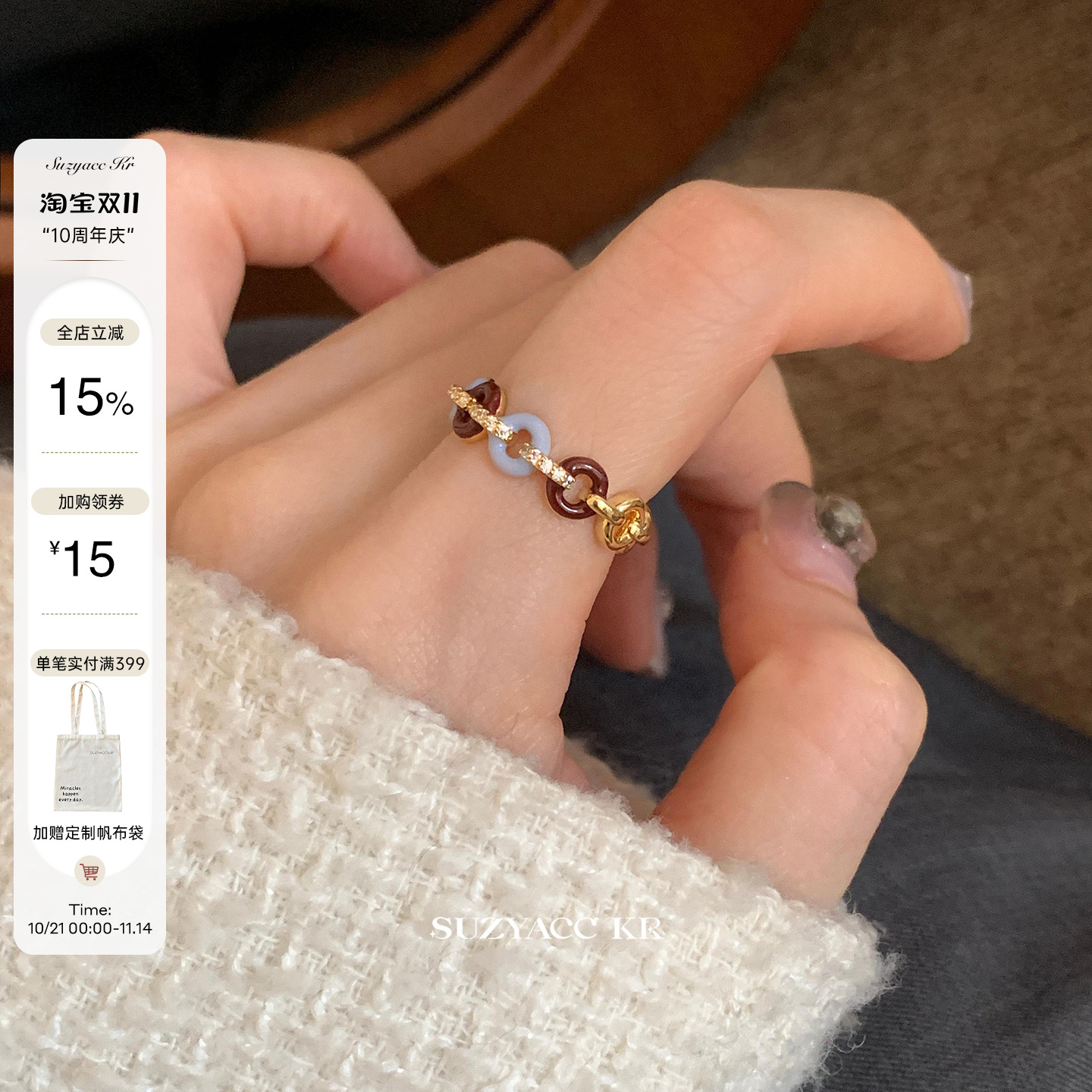 suzyacc kr复古气质滴釉水钻圆环戒指女小众设计高级感食指戒指环