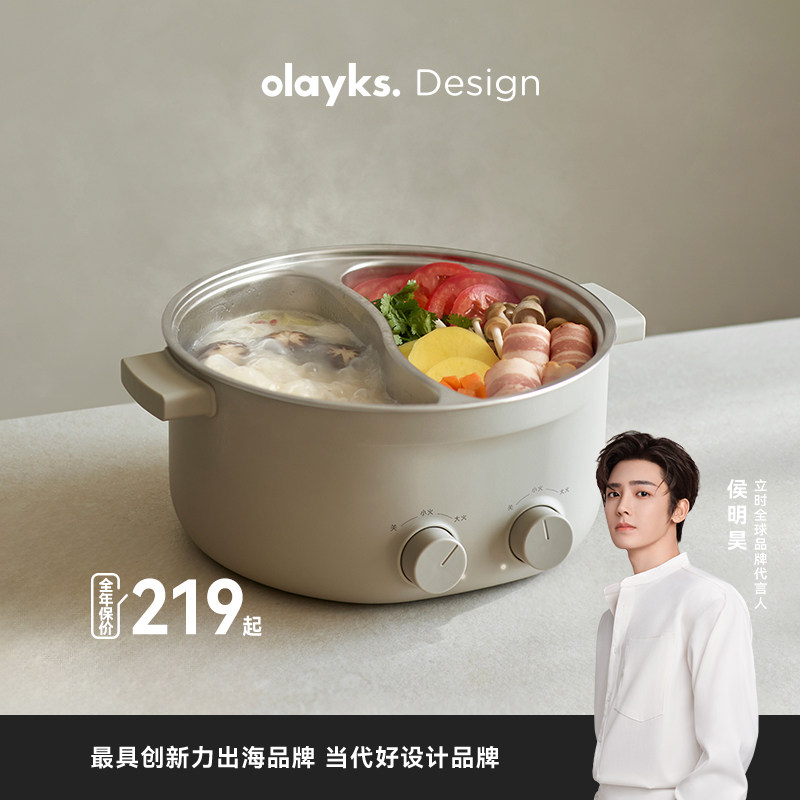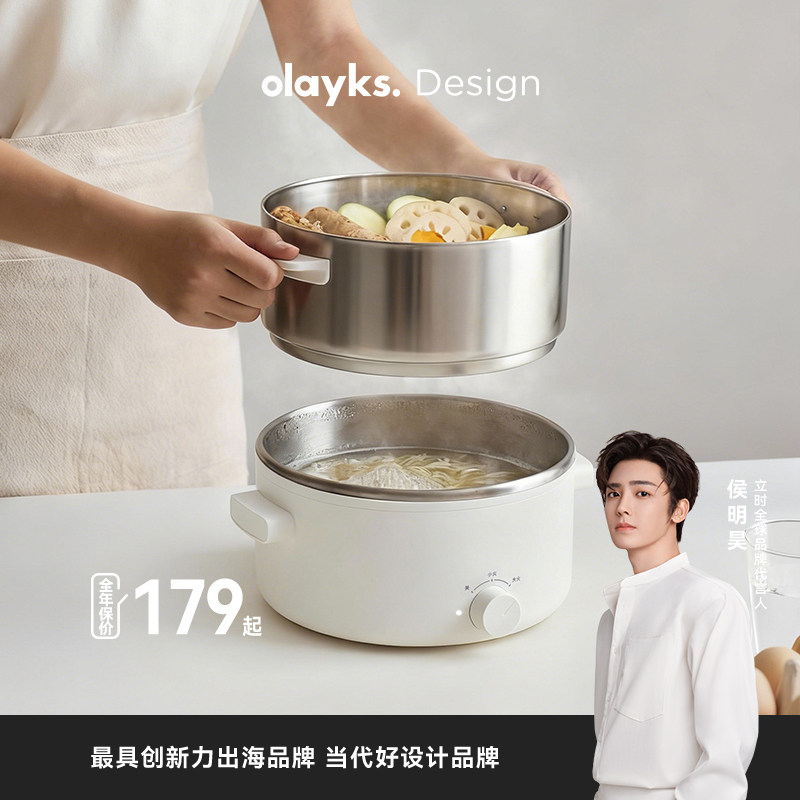 olayks立时0涂层不锈钢电火锅一人食家用多功能电煮锅宝宝辅食锅