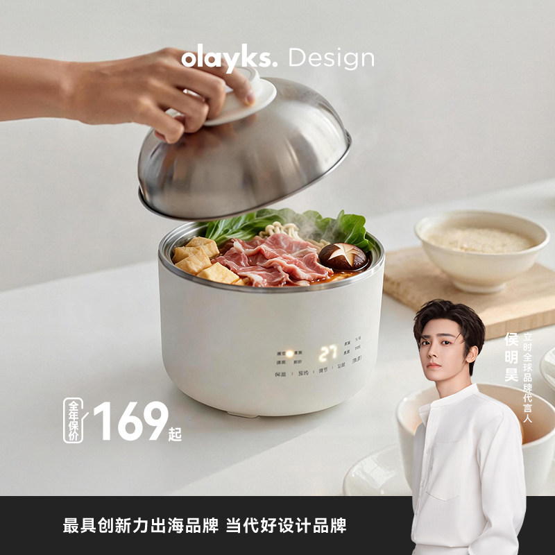 olayks立时小饭团一人食电火锅0涂层不锈钢一体式宿舍家用电煮锅