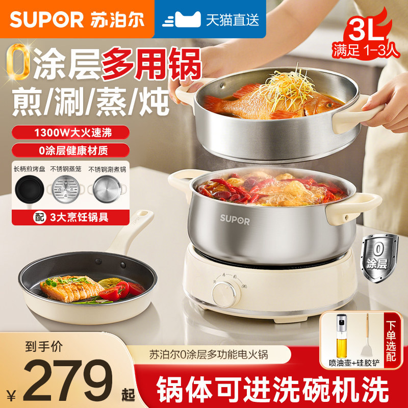 苏泊尔电煮锅电锅家用0涂层分体式电蒸煮锅多功能不锈钢电煮火锅