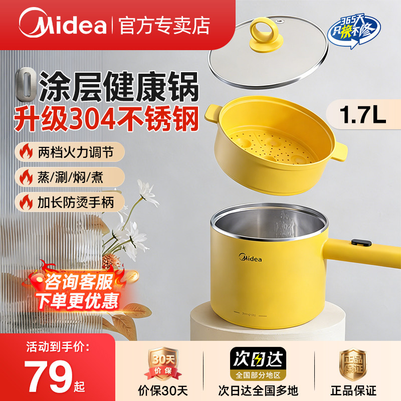 美的不锈钢电煮锅家用小型电火锅多功能蒸煮小电锅学生宿舍泡面锅