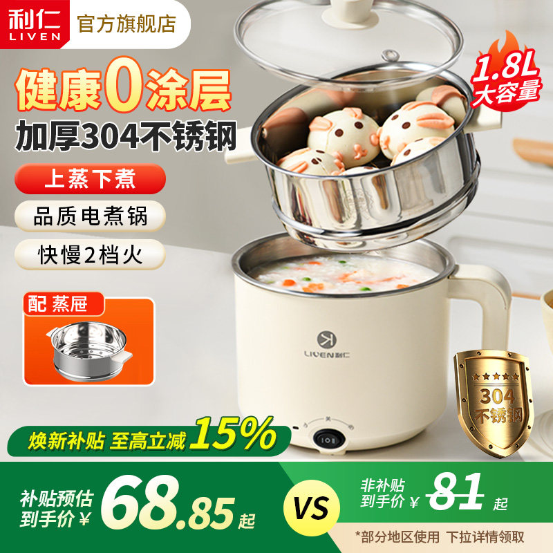利仁小钢人电煮锅不锈钢小型电火锅多功能一体学生宿舍泡面锅家用