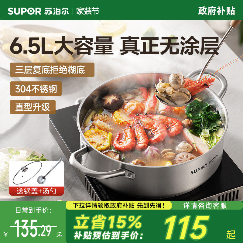 苏泊尔鸳鸯锅火锅锅具家用电磁炉专用加厚304不锈钢火锅盆大容量