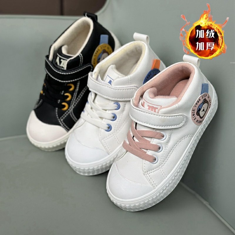 人本冬季加绒高帮小白鞋女鞋韩版百搭学生保暖帆布鞋大童棉鞋女生