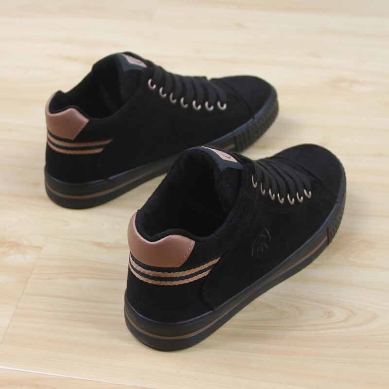 人本加绒加厚帆布鞋女冬季保暖平底板鞋韩版百搭学生休闲高帮棉鞋