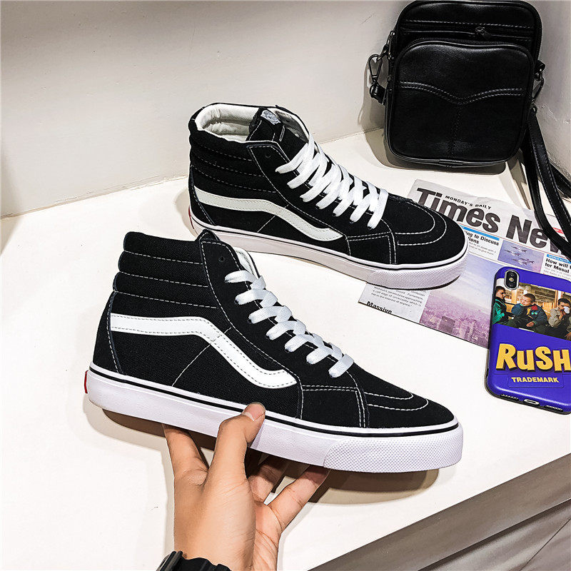 2025秋冬新款高帮帆布鞋男女情侣黑色板鞋韩版百搭潮流学生休闲鞋