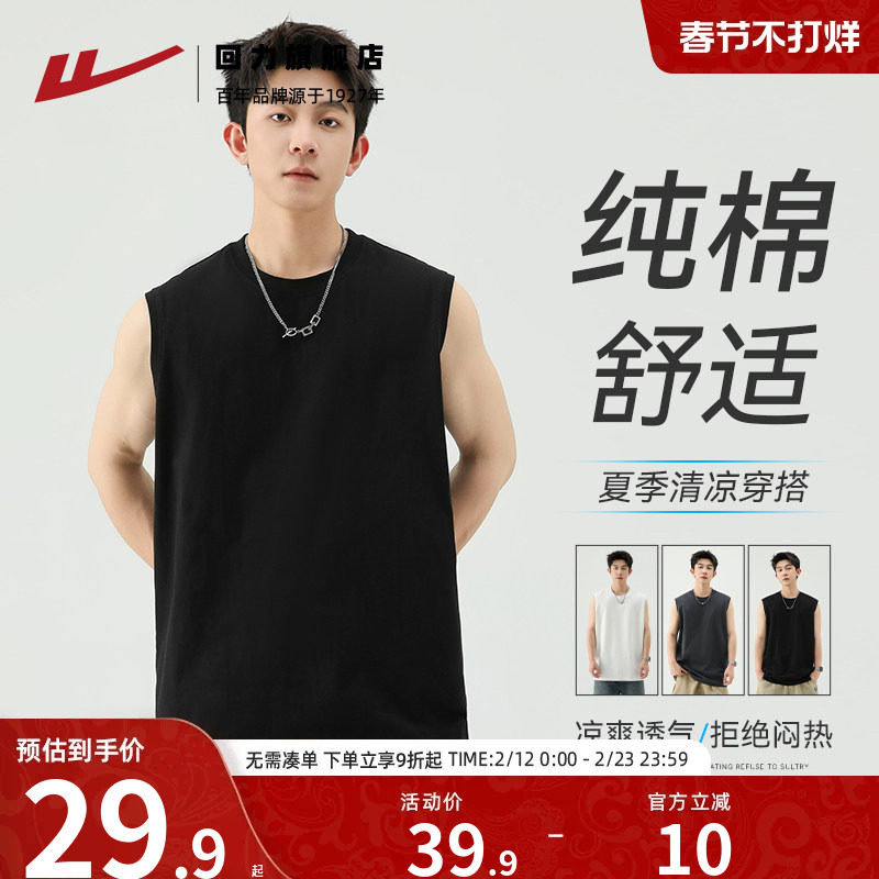 回力背心男士夏季纯色全棉坎肩运动健身速干黑色美式打底无袖T恤