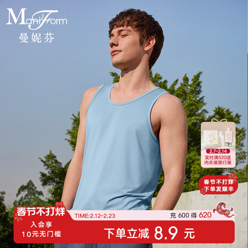 曼妮芬2026春男士舒适莫代尔休闲背心圆领运动打底上衣20400557