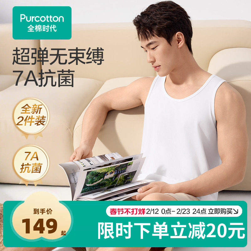 【背心2件装】全棉时代男士背心打底运动背心抗菌25年爆款男款