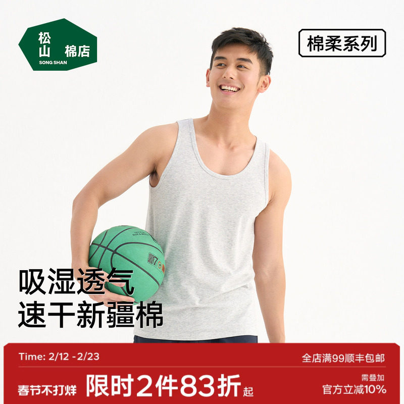 松山棉店男士背心新疆棉速干春夏薄家居服外穿运动吸汗打底衫睡衣