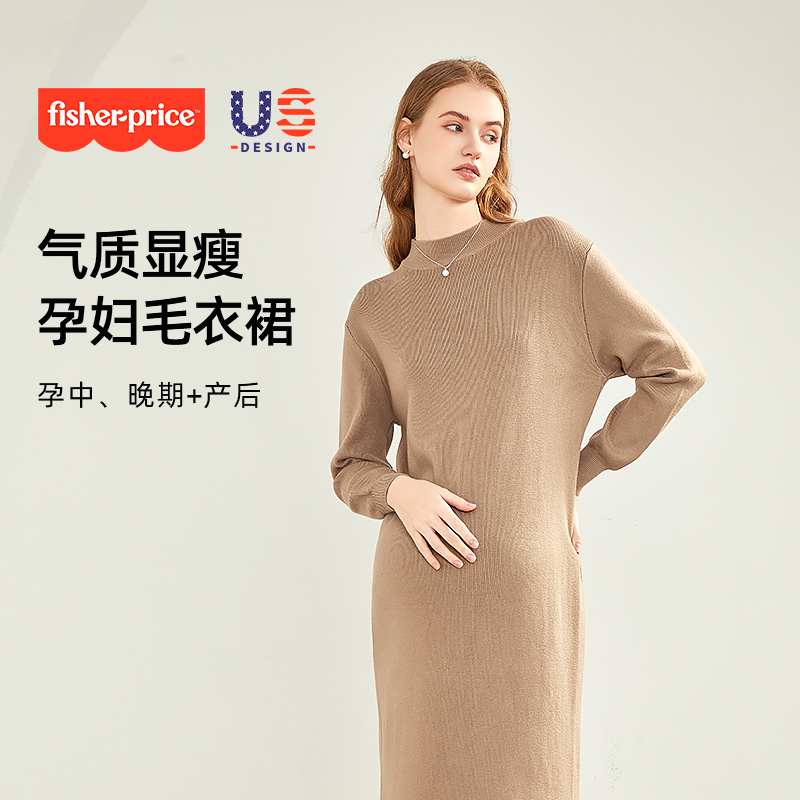 美国费雪孕妇连衣裙春秋韩版宽松针织内搭打底孕妇装2025新款秋装