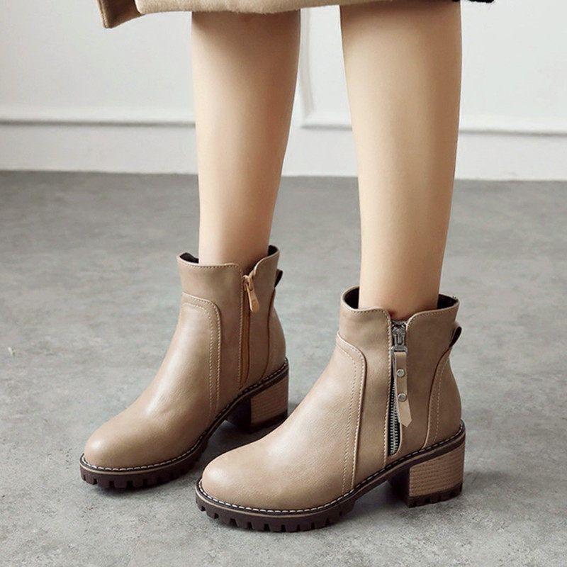 英伦复古百搭侧拉链女鞋子时尚秋冬大码短靴粗中跟学生短筒马丁靴