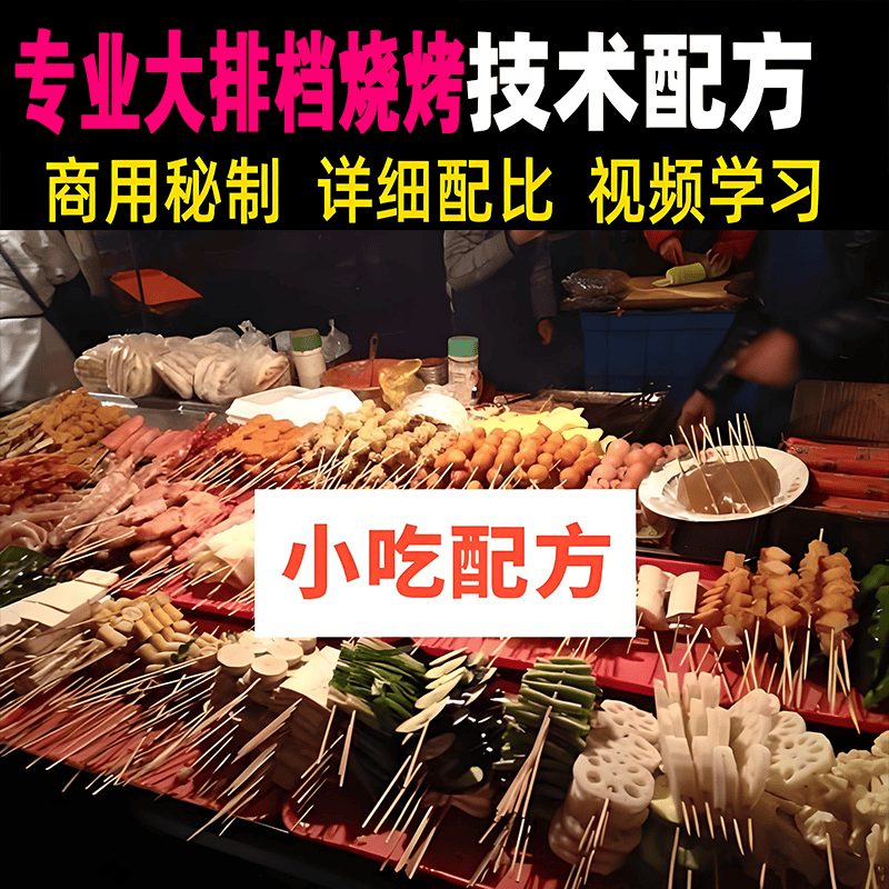 大排档夜市烧烤技术配方视频教程商用秘制腌料烤肉串撒料酱汁资料