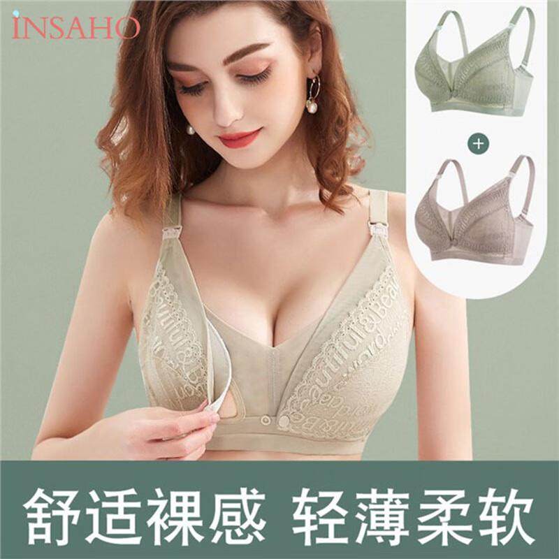 INSAHO哺乳文胸孕妇内衣无钢圈聚拢双开扣薄款透气哺乳内衣 媚茶