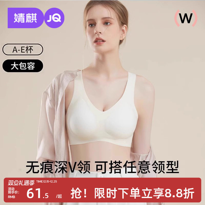 婧麒女士内衣大胸显小聚拢无痕背心薄款无钢圈孕妇运动文胸罩新款