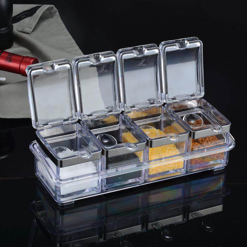 亚克力调料盒调味罐带盖家用厨房盐糖味精四格一体多格商用收纳盒